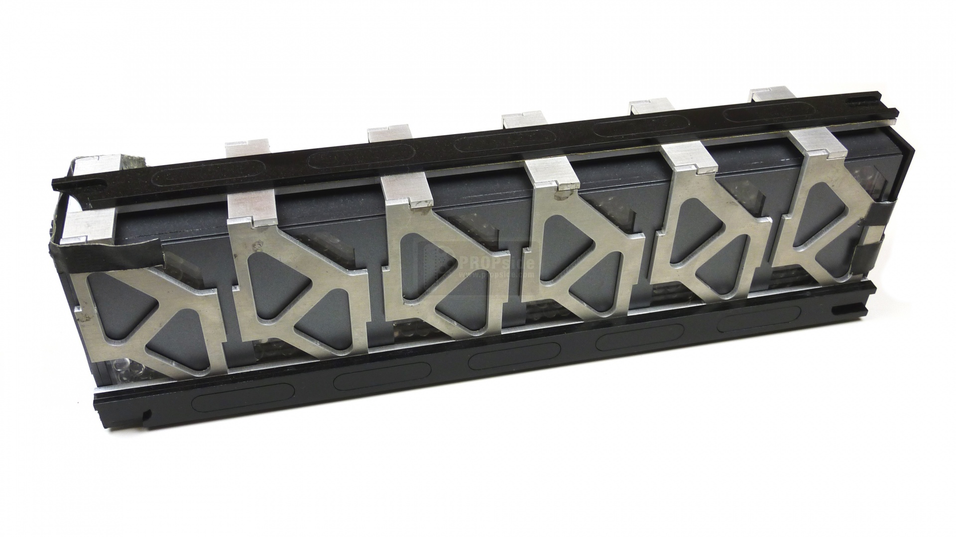 La baterÃa tiene algun que otro golpe, rotura o imperfección debido al uso en el set, con reparaciones insitu a base de cinta o pasta aislante. Proviene directamente de la Subasta Marvel que tuvo lugar en Abril de 2012. Solo se vendieron 7 baterÃas en la subasta, siendo esta una de ellas.